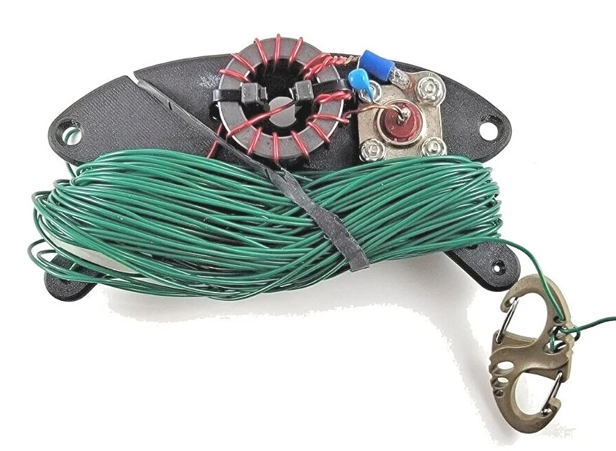 We supply an ample 68 feet of wire so that you can trim down to your best settings. Its Power Rating is 110w PEP SSB, 50w CW, and about 25-30w Digital. It is built on a Winder for packing convenience. And has a 49:1 unun transformer matching unit built right on it.